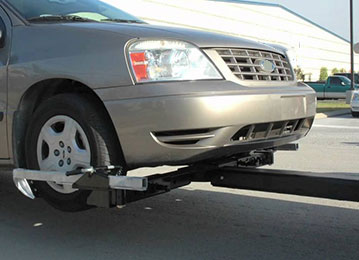 Yes, our low-height self-loader wheel lift tow trucks can safely remove a car from a parking garage with low clearance.